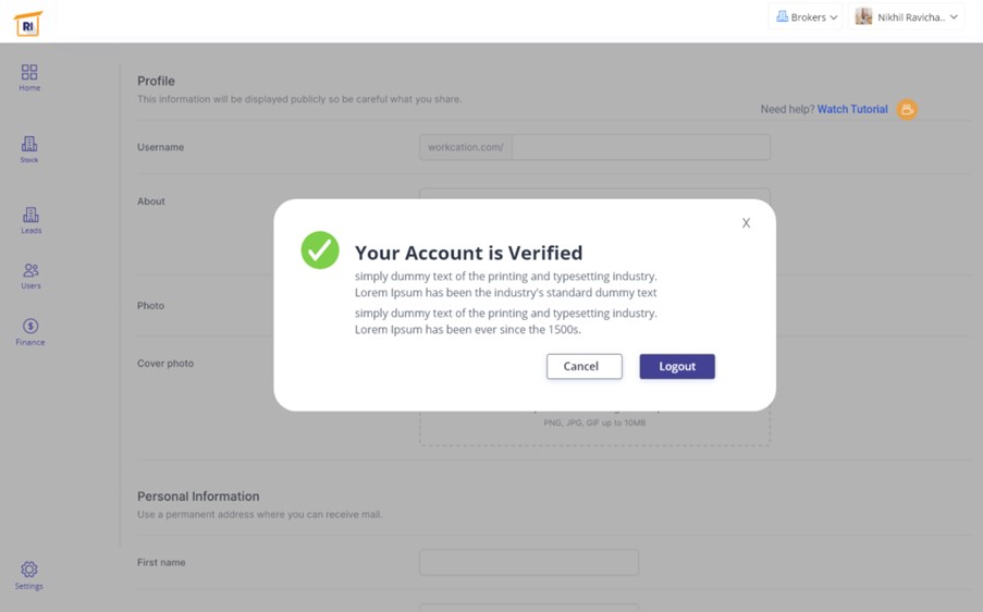 If you have selected the account type as “Broker” while filling the “sign up” form, you will see the following screen on your web browser.