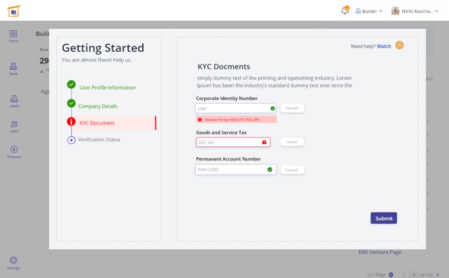 After you have completed filling the form with all the details, please press the ‘Submit’ button to get your documents and details verified.