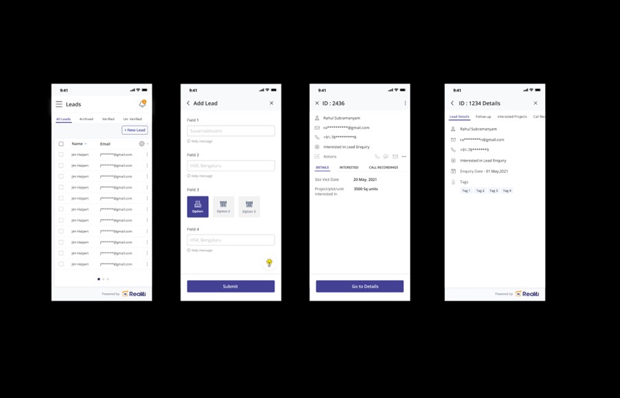 • The mobile responsive screens of all the above lead management system and the detailed enquiry information are shown below.