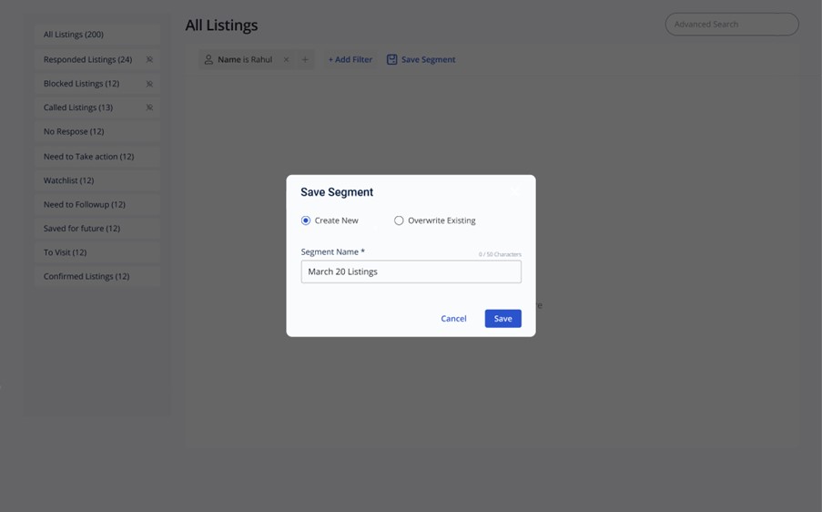 • The details that can be captured include: Project name, Property area in square feet units and few additional information such as, floor preference, amenities, unit facing etc.