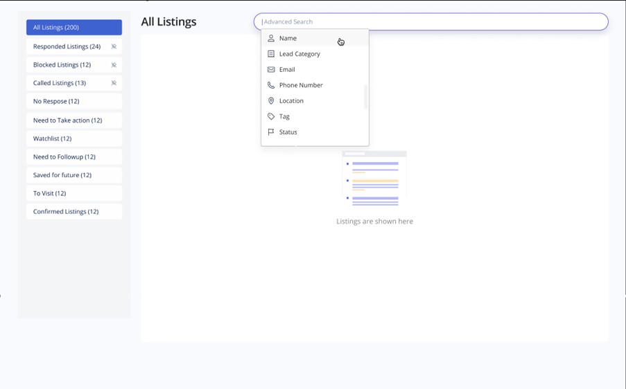• Under the ‘All Leads’ category you will find the list of prospective buyers recorded in the system as shown below.