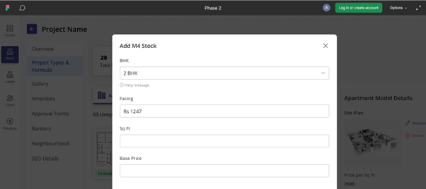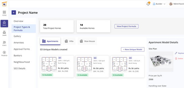 In the project types and formula section, you will have the clarity on the type of property - apartments, villas, row houses and show information when one selects on them based on the requirements.