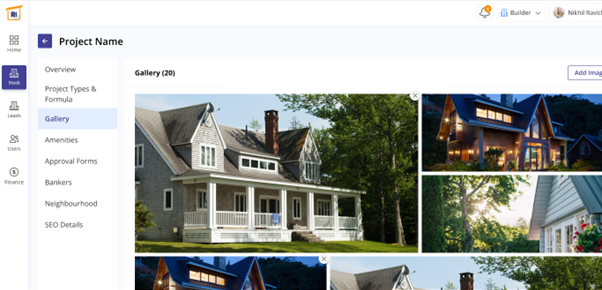 Next is the gallery section, where all the images of the property - both interior and exterior is provided, which provides clarity for all the stakeholders. The stakeholders with editing permissions can even add new images or remove images, if any alterations are done.