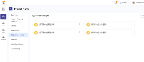 Next is the approval forms section, where the bank approvals are present for the clients. You can even add other banker details based on the approvals received.