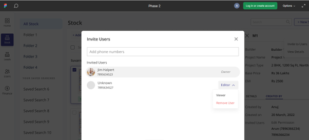 You can invite users with their phone numbers and give them permissions like viewing, editing, etc. and you can also remove user from the plan. You can also invite users with a message note like property details to highlight the requirements.
